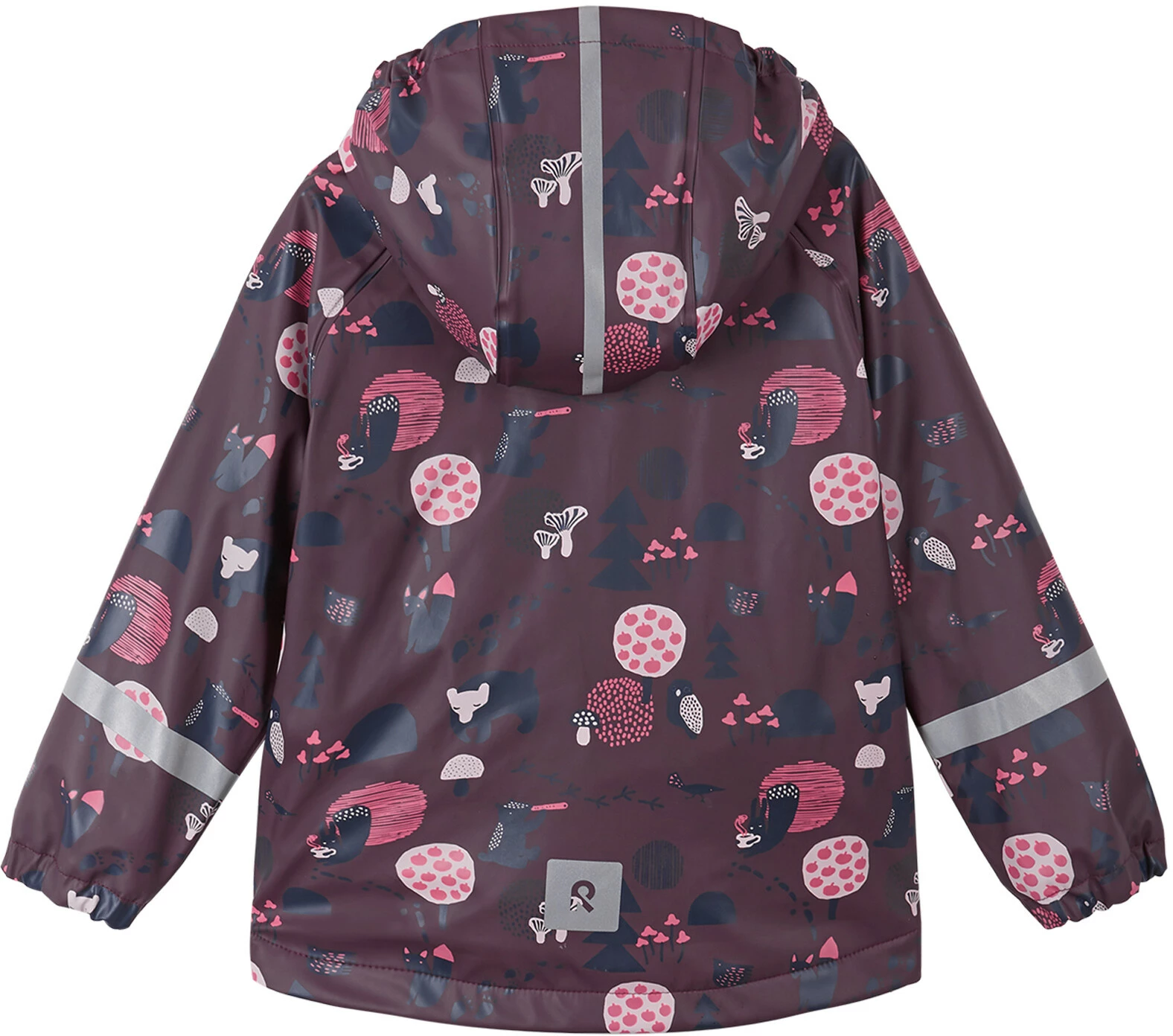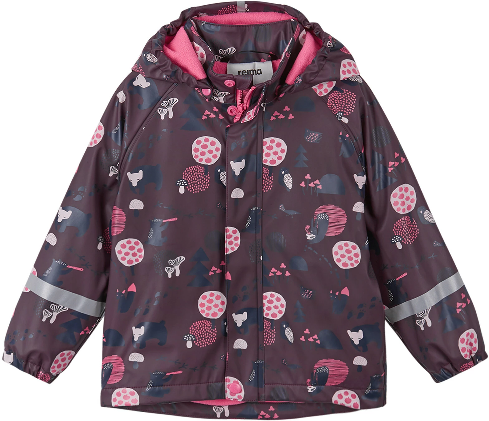 Regenjas met warme fleece voering en leuke prints.Het Koski regenjack voor kinderen heeft een warme fleece voering en is gemaakt van soepel materiaal dat ook bij vorst lekker zacht blijft. Alle naden zijn waterdicht gelast, zodat er geen regen kan binnendringen. De afneembare kap biedt extra bescherming als je buiten speelt. Hij wordt vastgezet met drukknopen die eenvoudig loskomen als hij ergens blijft haken. Elastische manchetten en reflecterende details op mouwen en capuchon. Reima regenkleding is gemaakt van comfortabel, zacht materiaal zonder PVC.