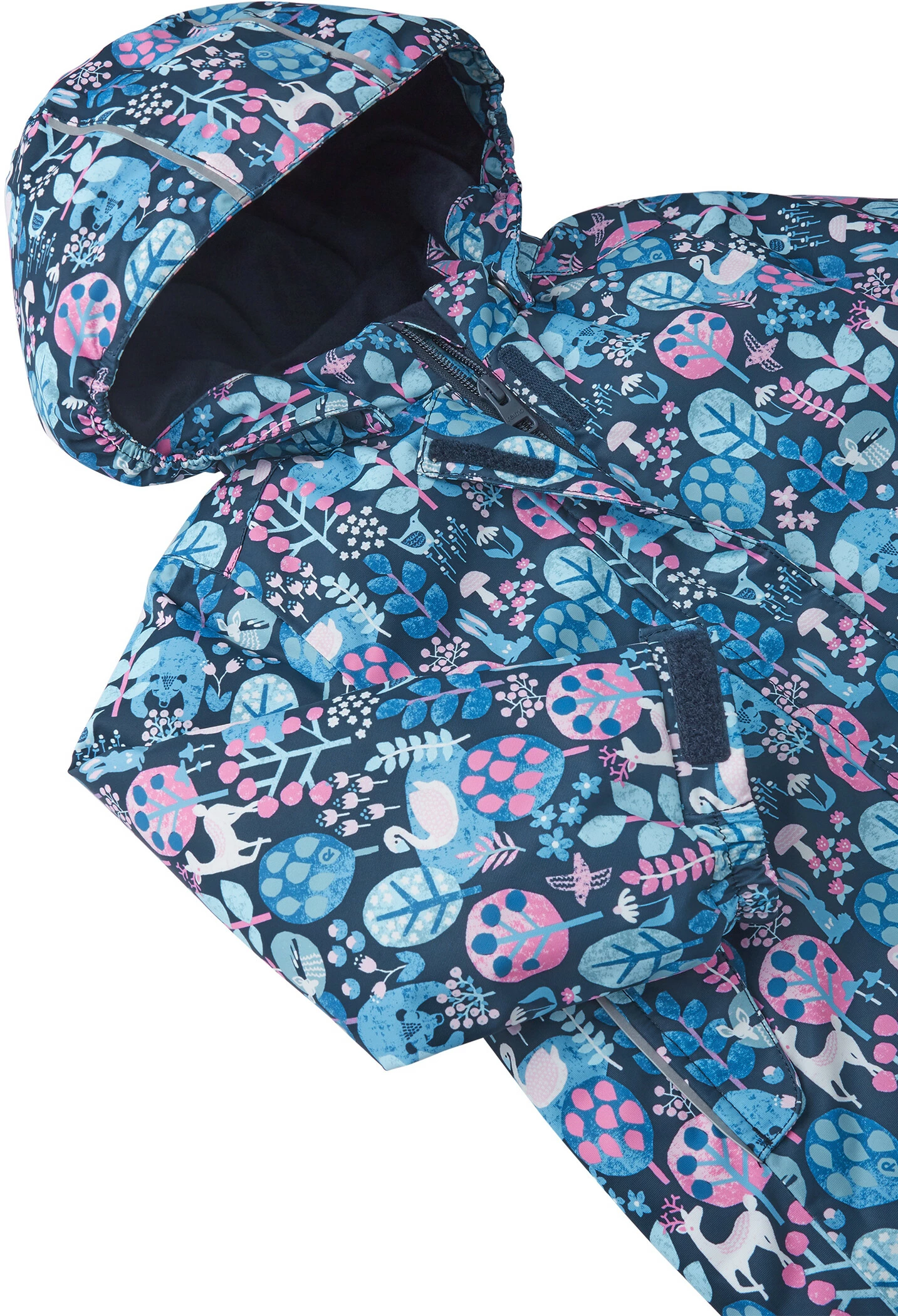 This is an excellent Reima winter jacket for toddlers! Its seams are sealed and it is made from a water- and windproof dirt-repellent material. The smooth lining and full-length zipper make morning dressing easier. A detachable hood protects from wind but is also safe – it comes off easily if it gets caught on something. Small flap pockets keep treasures tucked away.
