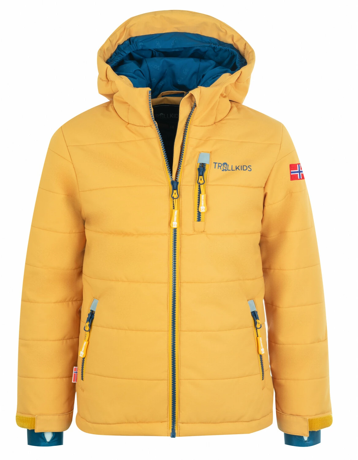 Wasserabweisende, gefütterte, sehr leichte Ski- und Winterjacke. Die Jacke ist aus extrem leichtgewichtigem wasserdichten Polyester-Stoff mit einer 6000er Wassersäule genäht und dadurch winddicht und wasserabweisend. Die Füllung besteht aus leichten, pflegeleichten Polyfasern, die auch bei Nässe noch wärmen. Beim Toben im Schnee schützt zusätzlich ein Schneefang und Klettverschlüsse an den Armen davor, dass Schnee von außen in die Jacke eindringt. Reflektoren vorne und hinten sorgen für die notwendige Sicherheit im Straßenverkehr und auf der Skipiste.