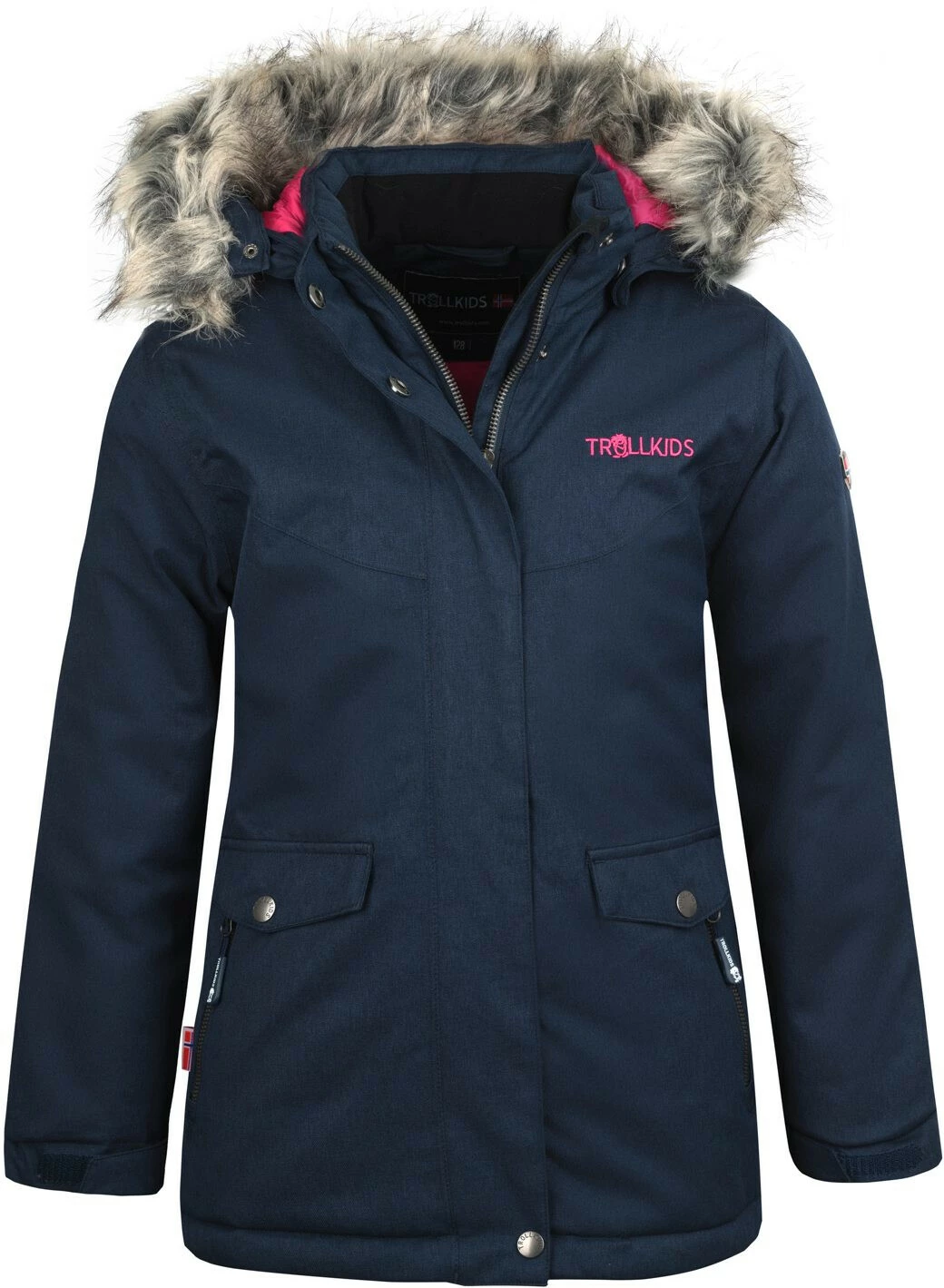 Modieuze meisjes winterjas, waterdicht, gevoerd en met afneembaar imitatiebont en capuchon. Genaaid van waterdicht Aquaproof 10×5 membraan met getapete naden. De dikke vulling garandeert een goede isolatie, zelfs bij temperaturen onder het vriespunt. Het jack heeft twee zijzakken en een binnenborstzak. Een afneembare, verstelbare gevoerde kap zorgt voor voldoende warmte-isolatie op het hoofd.